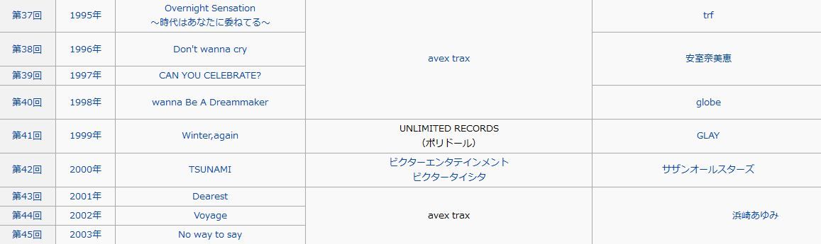 レコード大賞受賞者はほぼEXILE系とエイベックス系