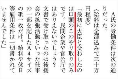 しかも山本有二は労働契約書を一切交わそうとしなかったらしい。もちろん労働基準法違反。山本有二はのらりくらりと逃げまくっては、あまりに何度も秘書から要求されるので逆ギレしたことも。